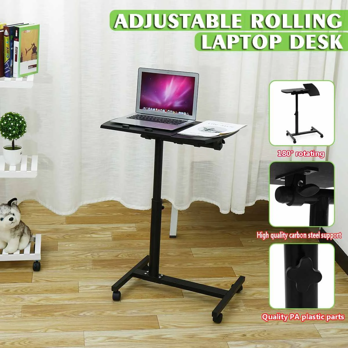 Adjustable Height Laptop Stand Rolling Cart Desk Laptop Table Desk