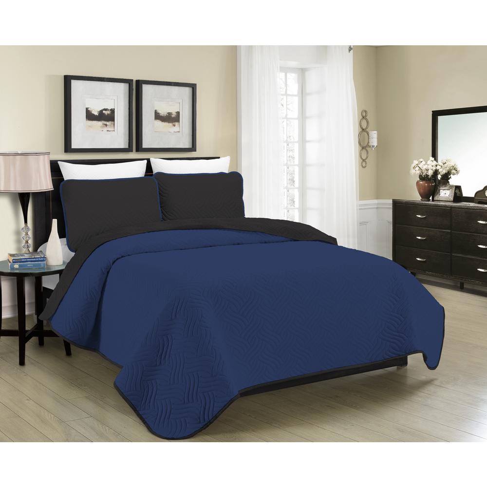 Morgan Home Allison Reversible 2 Piece Black Navy Twin Quilt Set