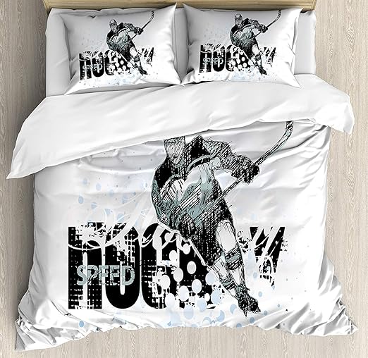 Amazon Com Hockey Twin Size 4 Pcs Bedding Set Grunge Sketch Art