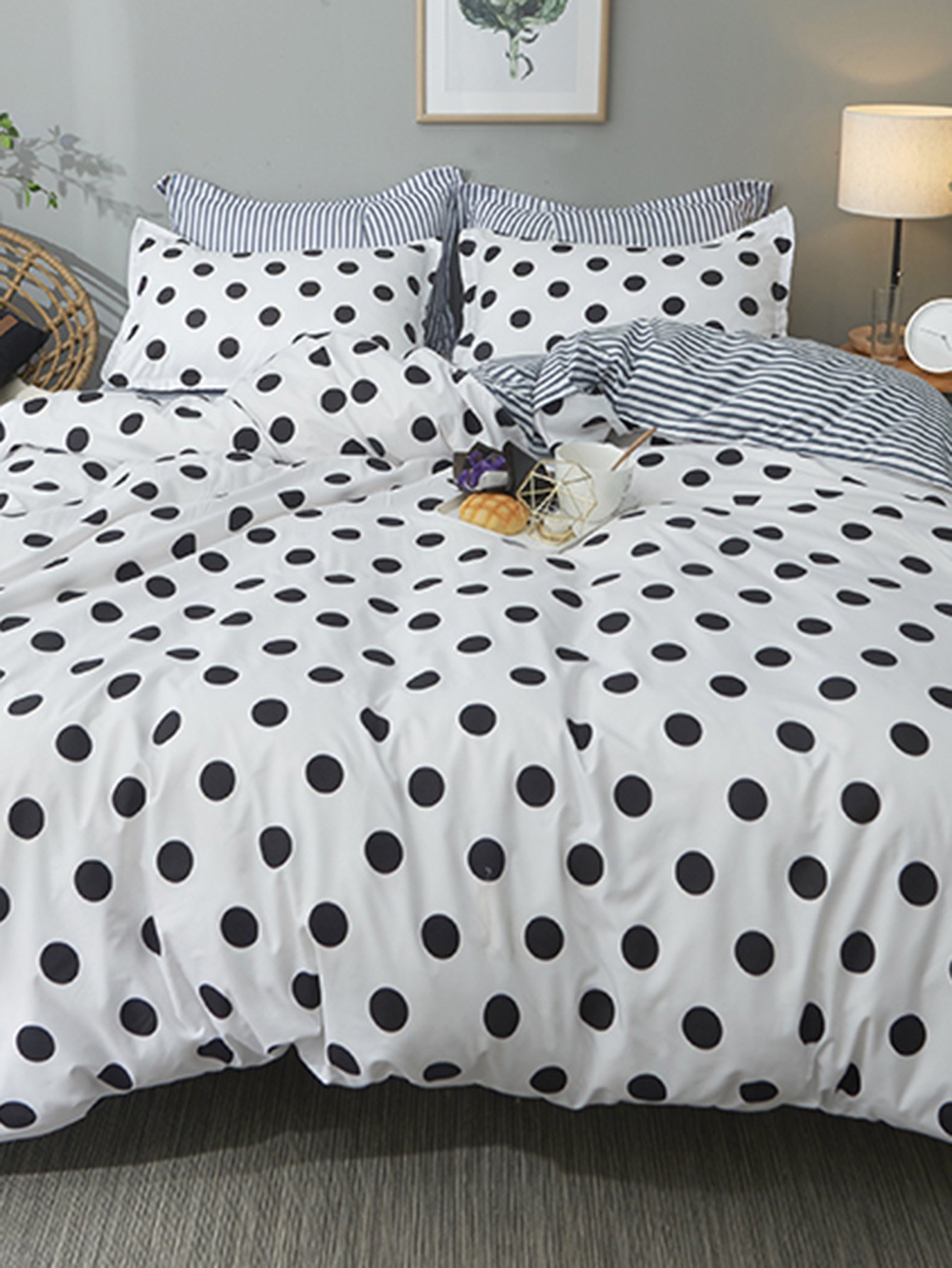 Polka Dot Striped Print Sheet Set Black And White Romwe Com
