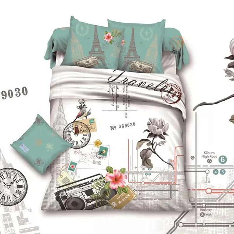 France Eiffel Tower Flower Bedding Sets Queen Size Bed Sheet