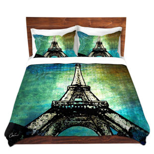 Paris Bedding Set Queen Comforter Teens French Script Eiffel Tower
