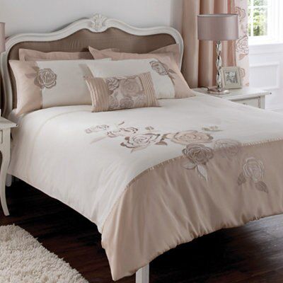 Embellished Floral Duvet Cover Bedding Set Double King White Pink