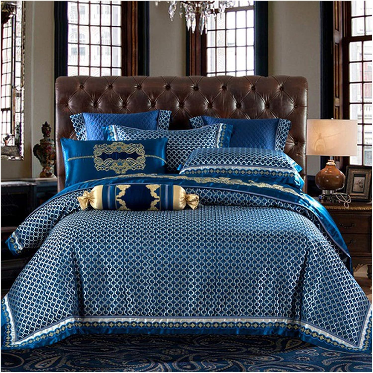 Amazon Com Slowly Mist Blue Black Silk Satin Luxury Royal Bedding