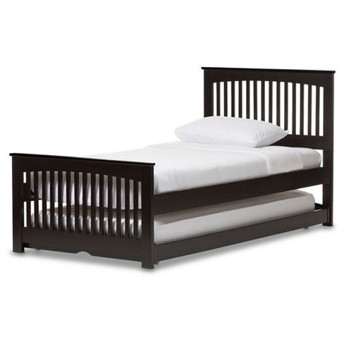 Hevea Solid Wood Platform Bed With Guest Trundle Bed Twin Dark