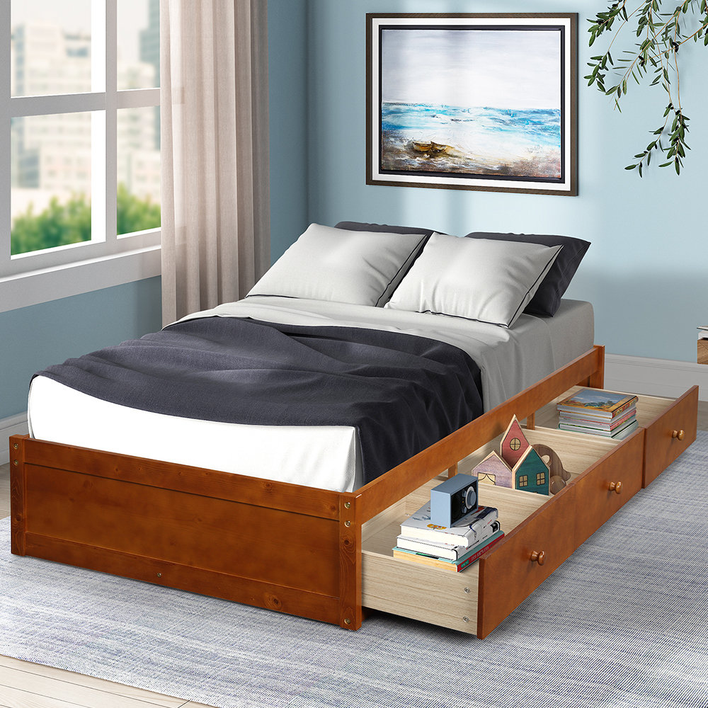 Twin Platform Wooden Bed Frame With 2 Storage Drawers Kids Bedroom