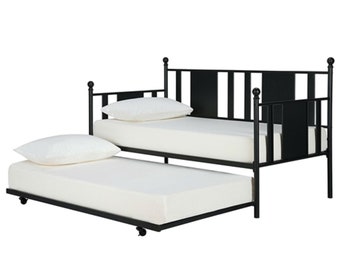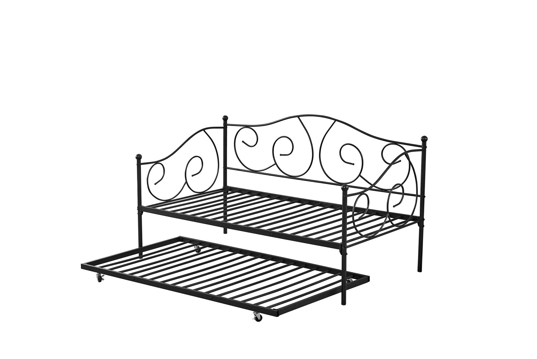 Xeohome French Day Bed And Trundle Black White Metal Frame Ebay