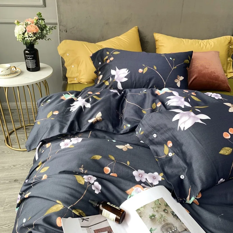 Gray Floral Duvet Cover Bedspread Luxury Egyptian Cotton Bed
