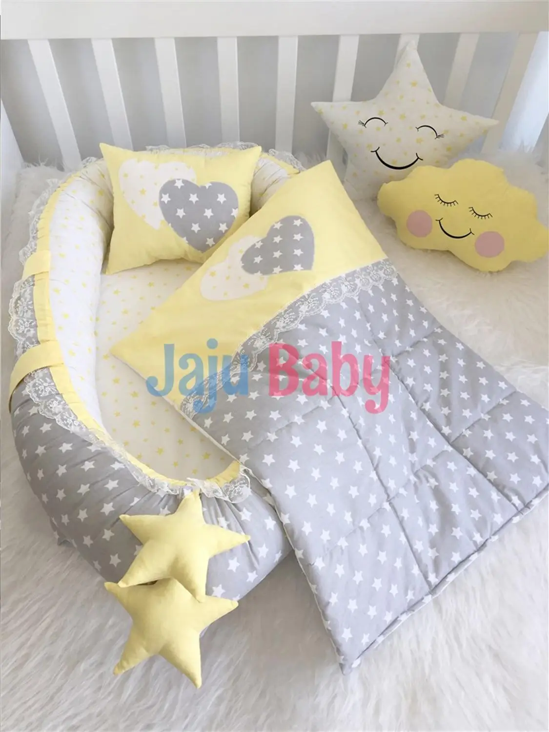 Jaju Babynest Gray Star Yellow Combined Luxury Orthopedic Babynest